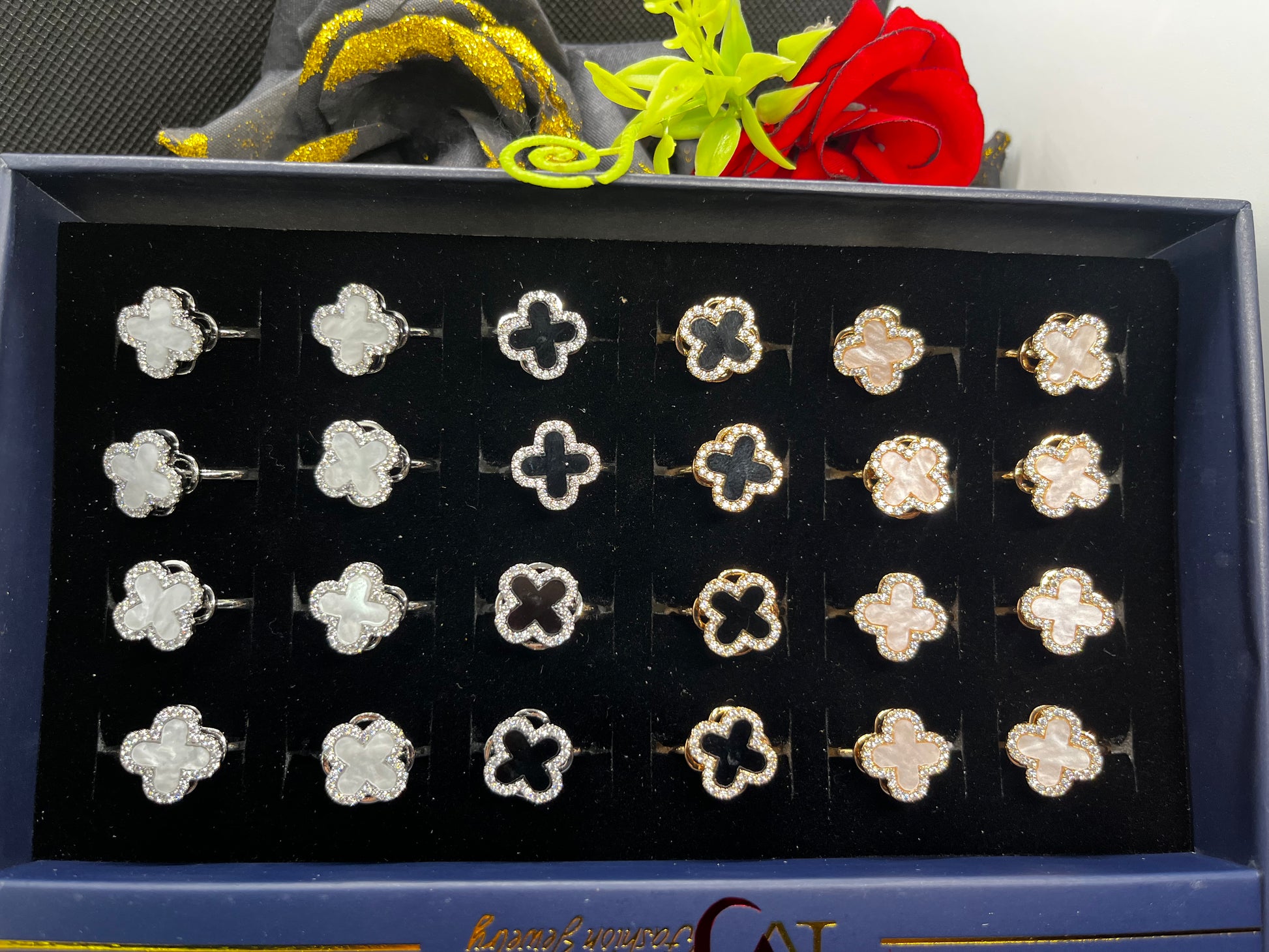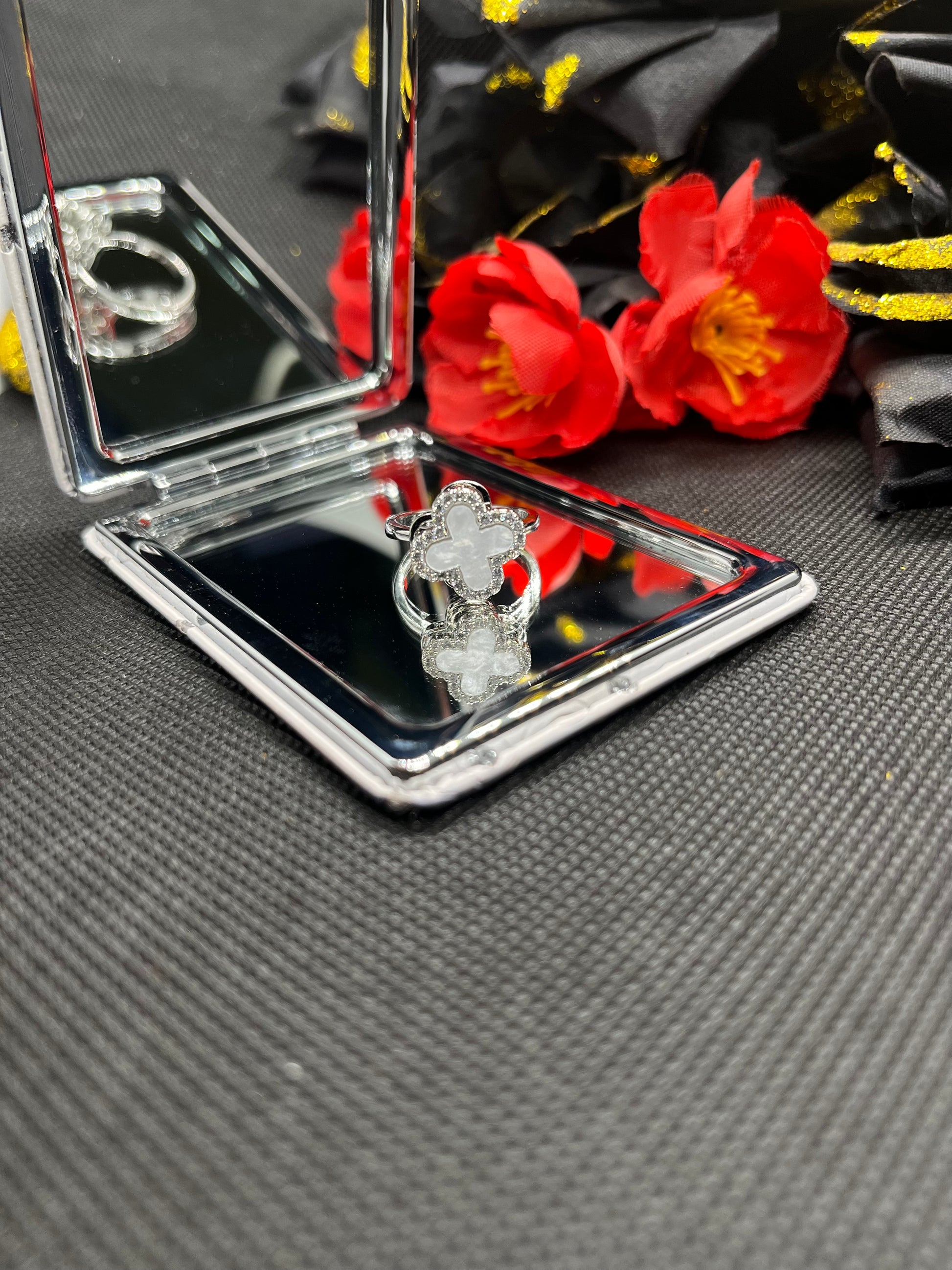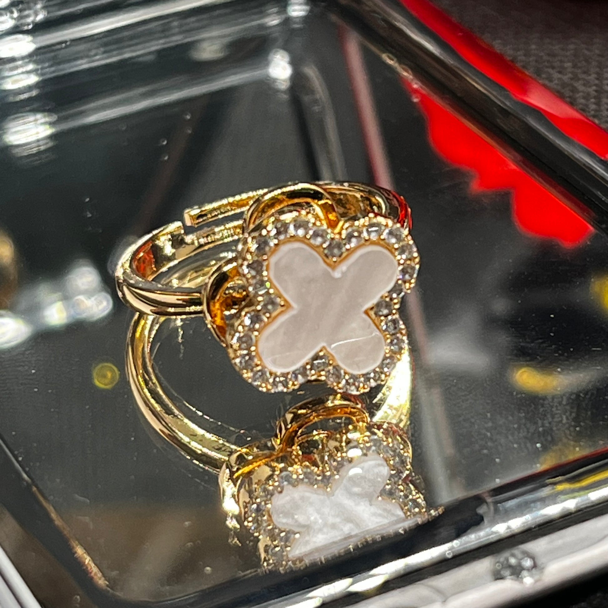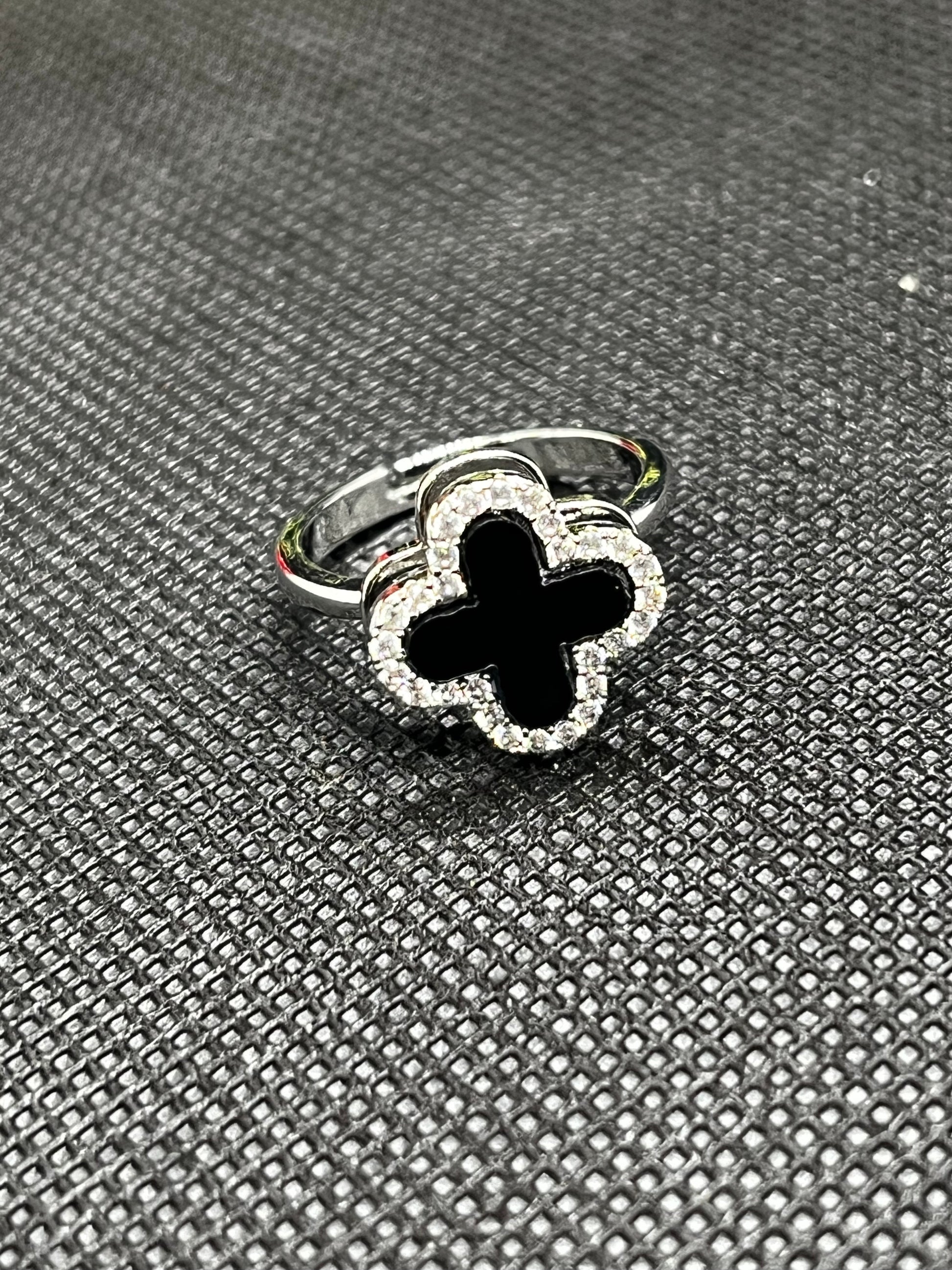 The clover motif represents luck, balance, and elegance, while the crystal-outlined frame adds a refined sparkle. Crafted with a comfortable adjustable band, it fits effortlessly on most finger sizes—no sizing stress, no compromises.