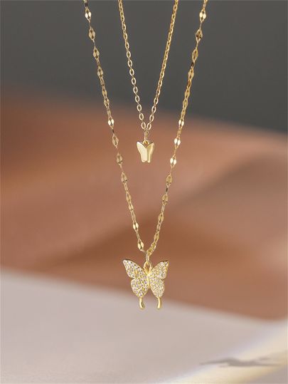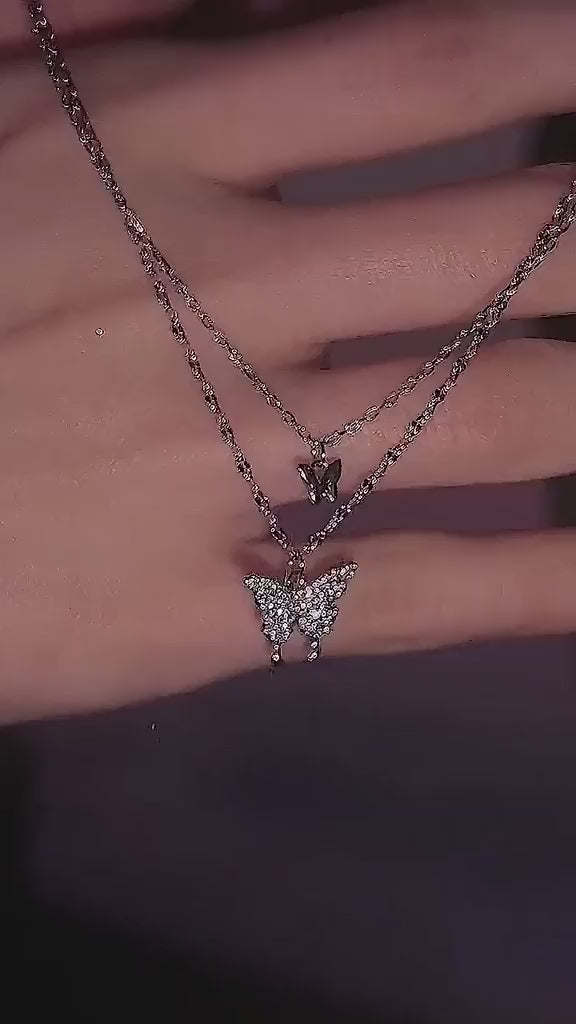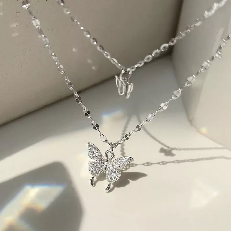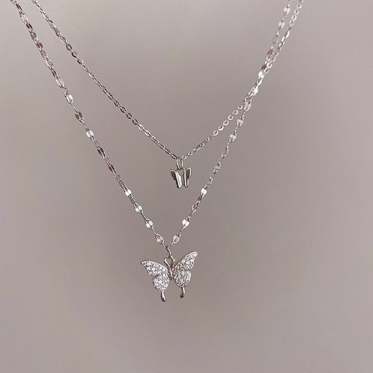 This Elegant Butterfly Layered Necklace features a beautiful double-layer design with a minimal butterfly charm and a sparkling crystal butterfly pendant. Inspired by Korean fashion aesthetics, it adds a soft luxury touch to any outfit.