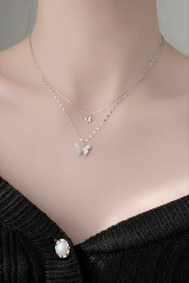 Butterfly Double Layer Necklace – Minimal Korean Jewelry
