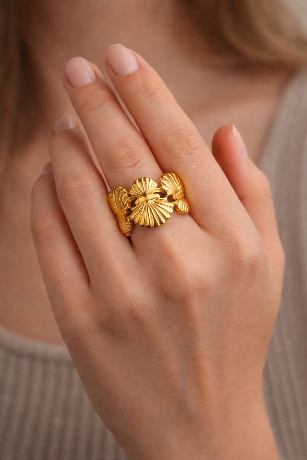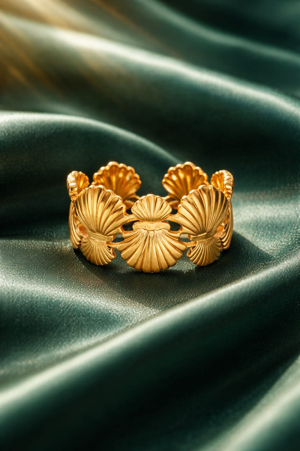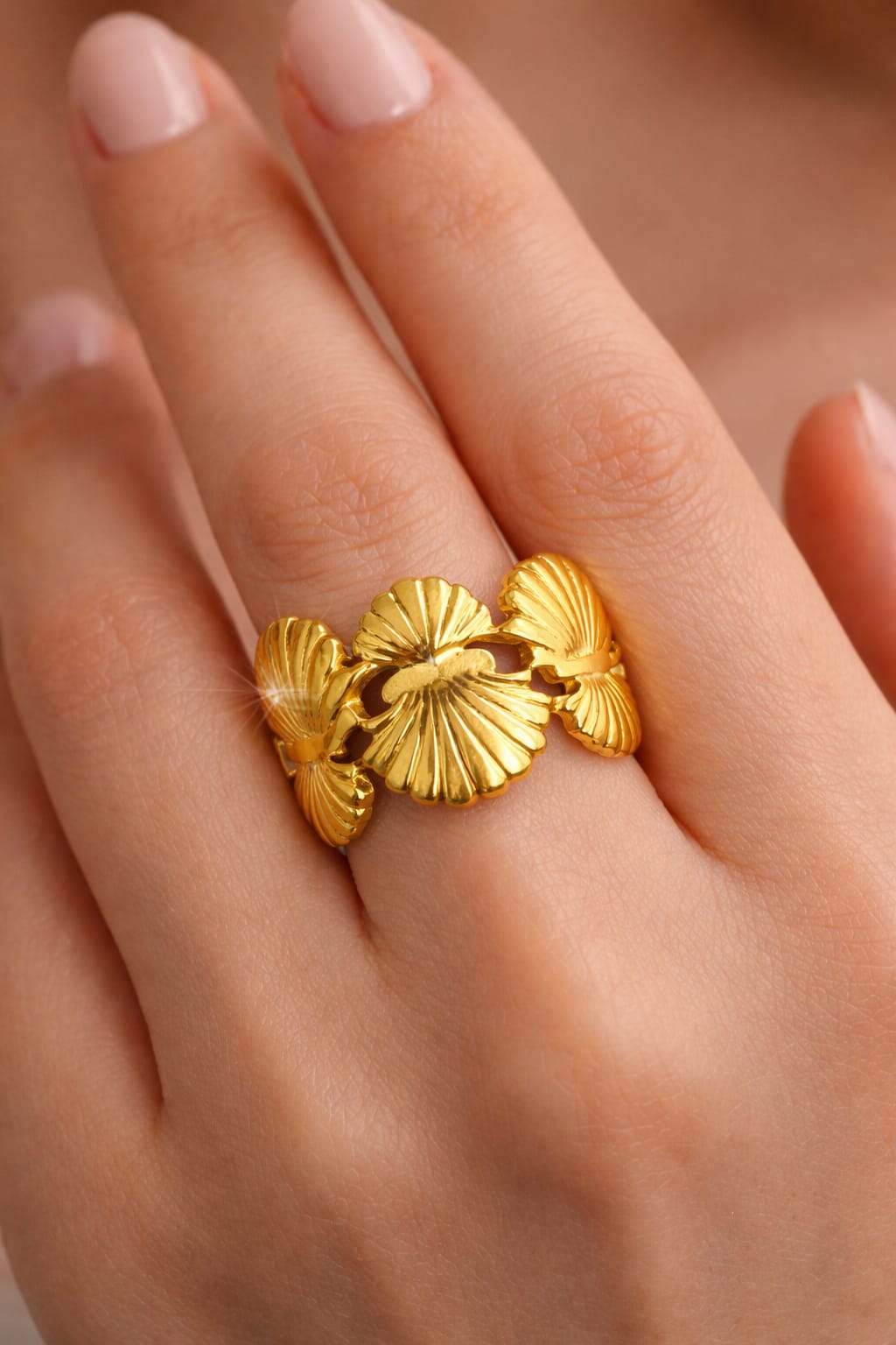 Golden Shell Floral Wide Band Statement Ring for Women